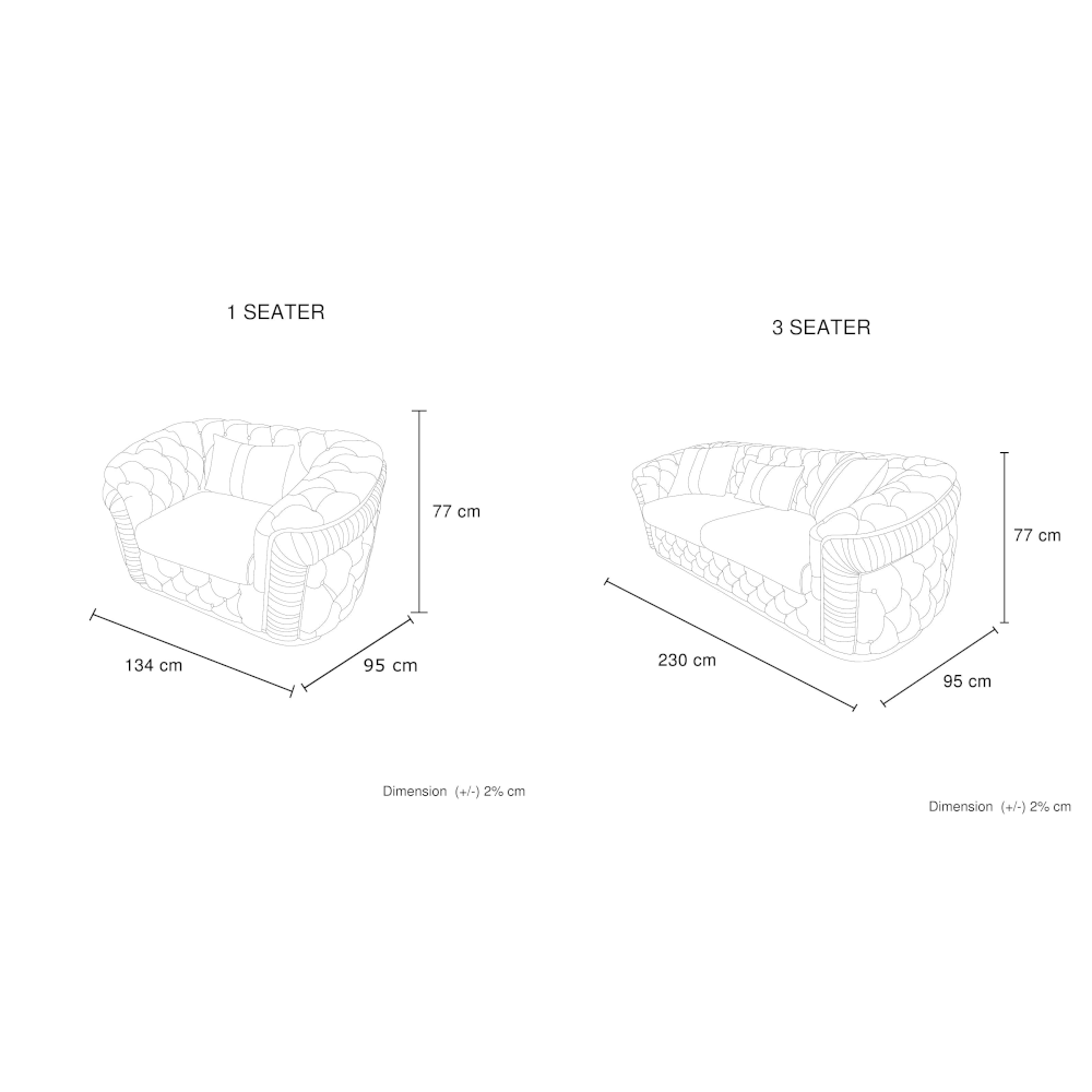 A€‹ 3 Seater:L-230X W-95 X H-77