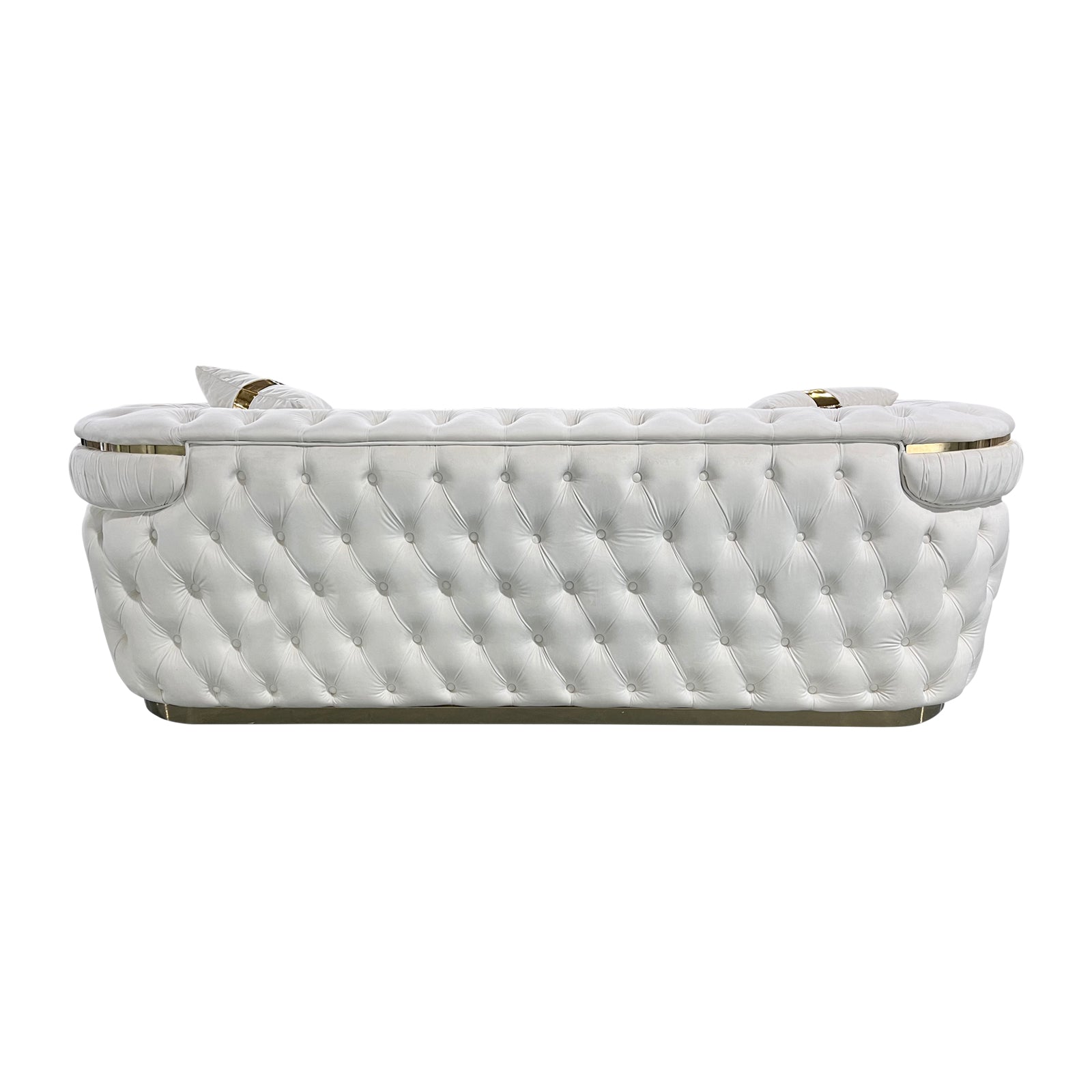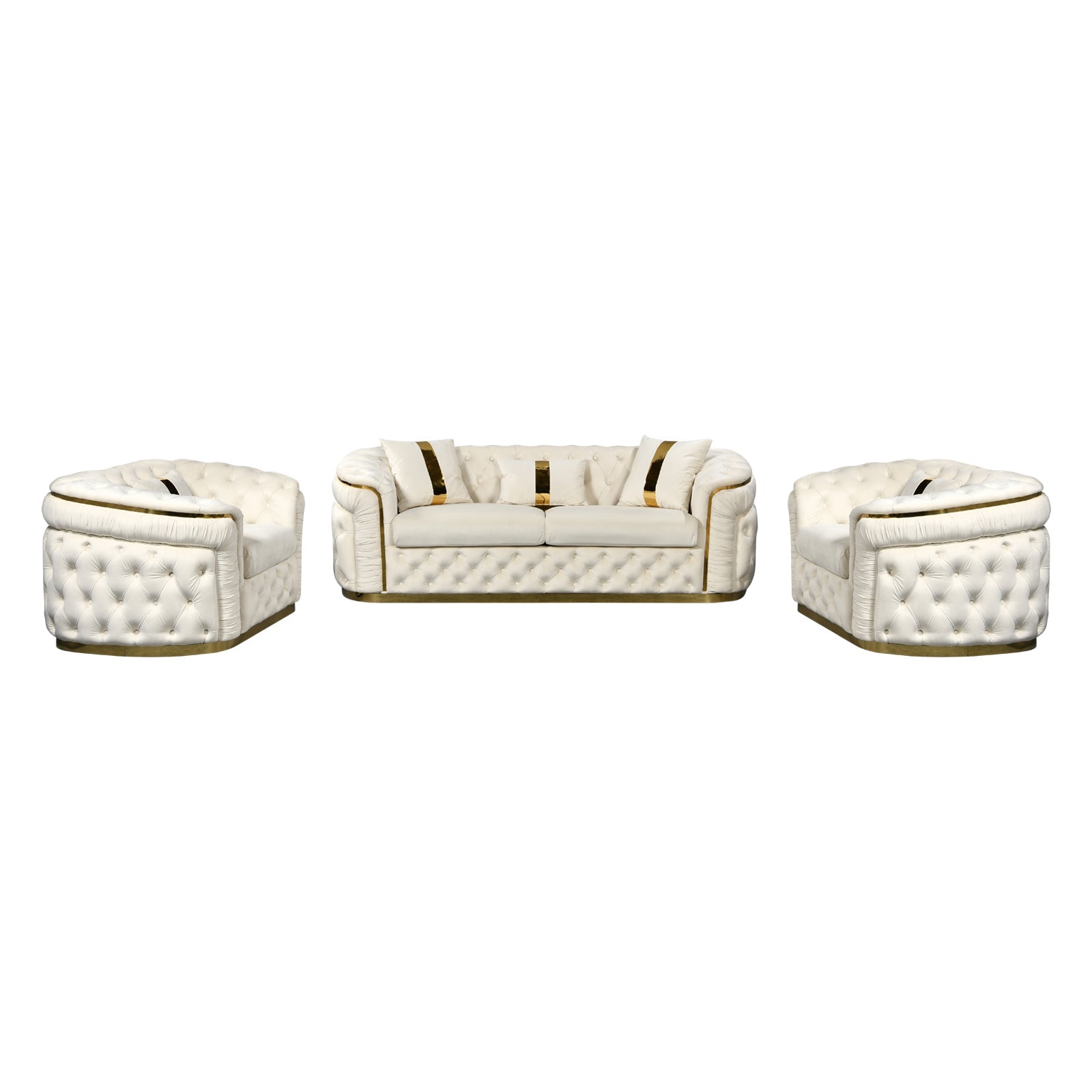 3 Seater and 2pcs 1Seater Sofa Set Beige Velvet Fabric Solid Wood Construction Gold Stainless Steel Trim