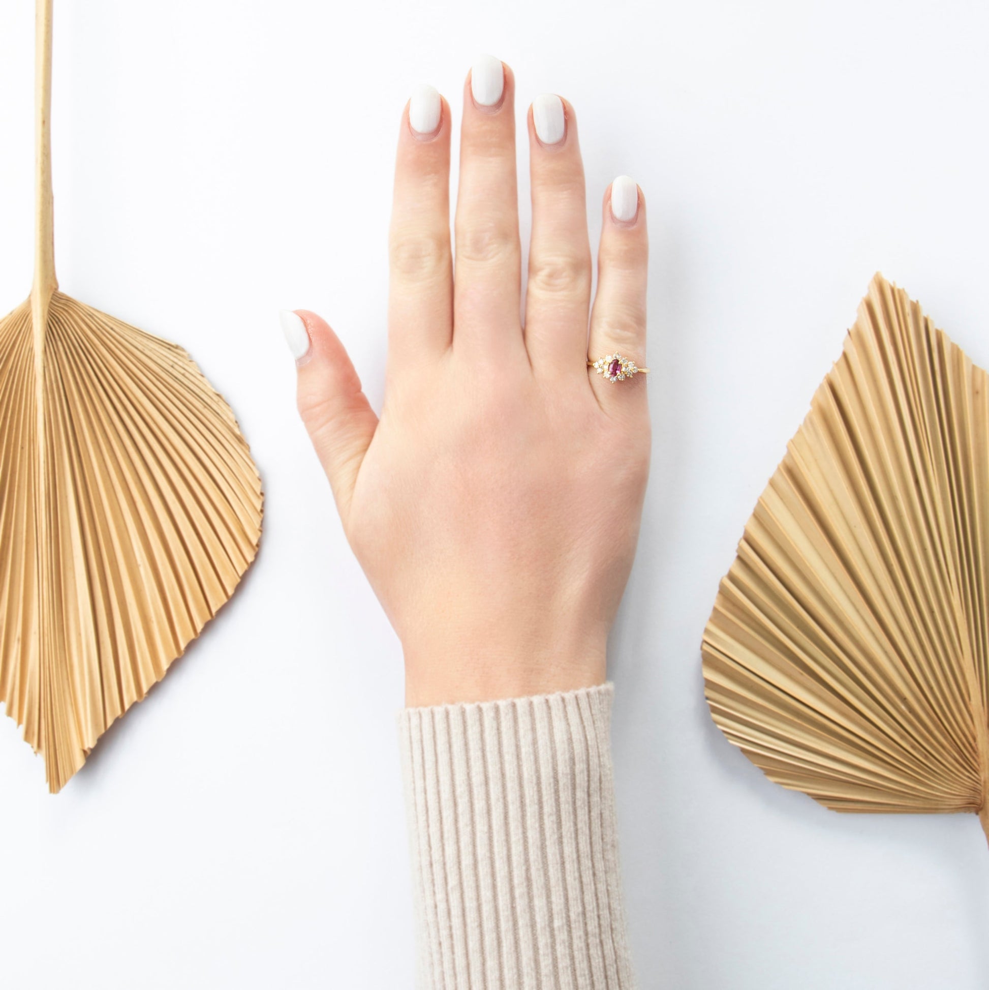 Discover this 18k yellow gold ring crafted by vintage maker in this wonderful haloed cluster design featuring ruby and diamond. All gemstones are natural, earth mined stones, unless stated otherwise.
